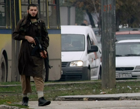 Los medios oficiales informan: “Un serbio, perturbado mental, involucrado en el accidente en el centro de Sarajevo, intranquilizando a los ciudadanos. La policía reaccionó con rapidez y redujo al maníaco. Al mismo tiempo son juzgados dos miembros de la República Srpska (ente serbio de Bosnia-Herzegovina) debido a los crímenes de guerra cometidos en contra de los civiles en Kotor Vares…”Pues bien, el serbio de nacimiento (Mevlid Jašarević, 1988), vive durante años en Bosnia-Herzegovina, donde practica el wahabismo con total tranquilidad. Eso sí, relacionado con las células wahabitas de los musulmanes de Serbia. El ataque se debe a la implantación de esta corriente del islam en Bosnia-Herzegovina. ¡Media hora paseando con kalashnikov! En Serbia detuvieron ya quince miembros de una célula local. En Bosnia-Herzegovina están meditando sobre las medidas a tomar.