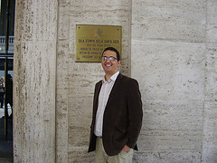 Tras el meeting, acudimos unos cuantos a una cena organizada por Jorge Enrique Mújica en la sede de gobierno de los legionarios de Cristo en Roma. Estuvimos Mayra Novelo, la directora de Catholic Net, su marido, el propio Jorge Mújica, Andrés Beltramo, J. Francisco Jiménez, Antonio González, que está en la organización de un congreso, http://creoeninternet.com/, que tiene muy buena pinta. Por parte de InfoCatólica estuvimos presentes Bruno Moreno -si no me acompaña a Roma yo hubiera acabo devorado por las pirañas del Tíber- y un servidor.La cena fue un gran detalle. Nos acompañó el encargado de comunicaciones de la Legión, el sacerdote austriaco P. Andreas Schöggl, así como otro sacerdote legionario, el P. Juan Ruiz, que escribe en Catholic.net. La conversación estuvo muy interesante. Abordamos los diversos enfoques de los temas en Catholic.net -está en muy buenas manos con Mayra al frente- y en InfoCatólica. Charlamos sobre si había que ser primero católico y luego periodista o al revés, sobre cómo enfocar las críticas a cargos eclesiales, sobre la necesidad de rectificar cuando sea oportuno, sobre el funcionamiento de Forum Libertas, los boletines que manda Catholic.net a miles de suscriptores, la Legión, etc.