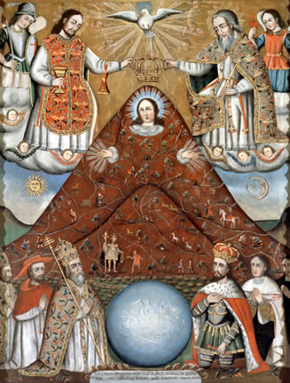 Ejemplos recientes: la revista Bolivia Misionera, de las Obras Misionales Pontificias, recoge un artículo titulado Virgen del Cerro, la Evangelizadora y Misionera. En él, su autora afirma que la Virgen del Cerro fue en su tiempo un gran instrumento catequético, en el que se aprecian símbolos y signos explícitos de la cosmovisión y la religiosidad; de costumbres y naturaleza de dos creencias, religiones que se encontraron al descubrirse el Nuevo Mundo.