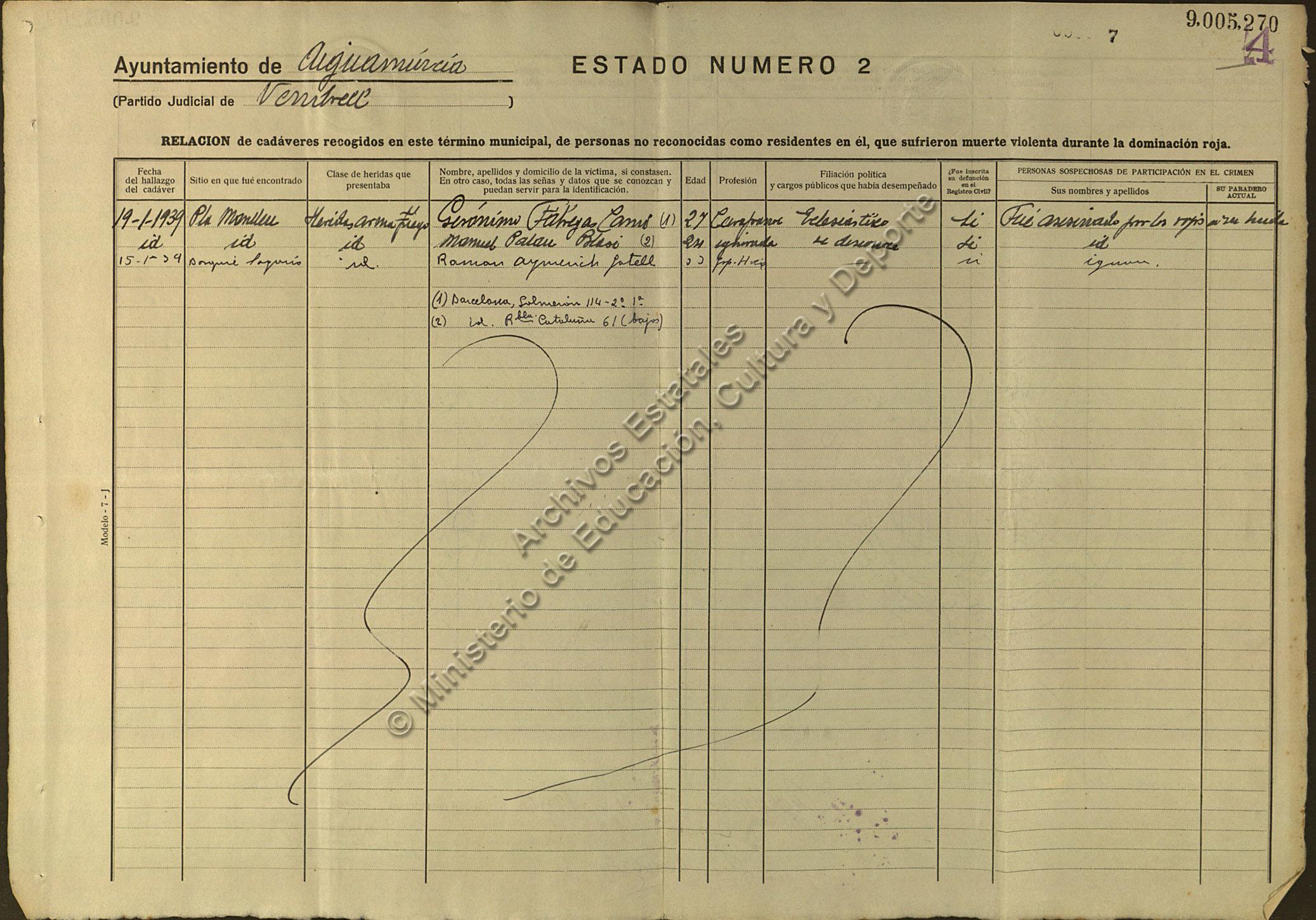 Fàbregas (Gerónimo en la documentación de posguerra que copio abajo, y Jeroni según la documentación de la Beatificación).