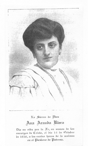 Ana María Aranda Riera, de 48 años y natural de Denia (Alicante), soltera, fue asesinada en el picadero de Paterna (Valencia) el 14 de octubre de 1936, y beatificada en 2001.