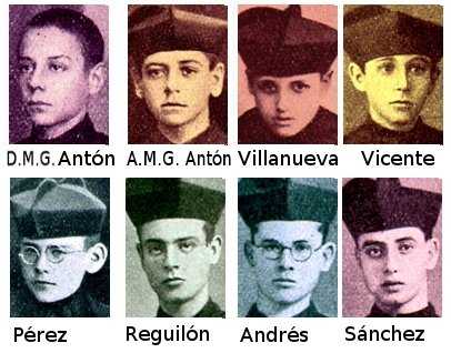 Ya solo quedaban 15 carmelitas. Uno más, el padre Evangelista Muñoz Tornero, se bajó del tren en Albacete y fue asesinado en Almusafes (Valencia). Otro, fray Isidoro Garrido, se salvó escapándose durante el viaje al aprovechar una distracción del vigilante que iba con ellos. La pista de otros cinco más se separa de los ocho que, llegados a Atocha el 28 de julio, al no poder seguir viaje hacia Segovia (en zona nacional), fueron llevados a un asilo de ancianos del Paseo de las Delicias, donde permanecieron hasta la medianoche del 17 de agosto, cuando un grupo de milicianos irrumpió en la sala donde dormían y les ordenó vestirse de inmediato, dejando todo equipaje en su sitio. Los clérigos profesos carmelitas calzados fusilados en Carabanchel el 18 de agosto de 1936 y beatificados en Tarragona el 13 de octubre de 2013 son: José Sánchez Rodríguez, de 18 años (fray Ángel María); Nicomedes Andrés Vecilla (fray Bartolomé Fanti María), Ángel Reguillón Lobato (fray Ángel María, los tres naturales de Pajares de la Lampreana, Zamora) y fray Francisco María Pérez y Pérez (de Ros, Burgos), de 19 años; fray Adalberto María Vicente Muñoz (de Cuéllar, Segovia), fray Silvano María Villanueva González (de Huérmeces, Burgos) y fray Aurelio María García Antón, de 20 años; más fray Daniel María García Antón, de 22 (estos dos hermanos y de de Navacepeda de Tormes, Ávila).Los cuatro mártires nacidos un 2 de febrero