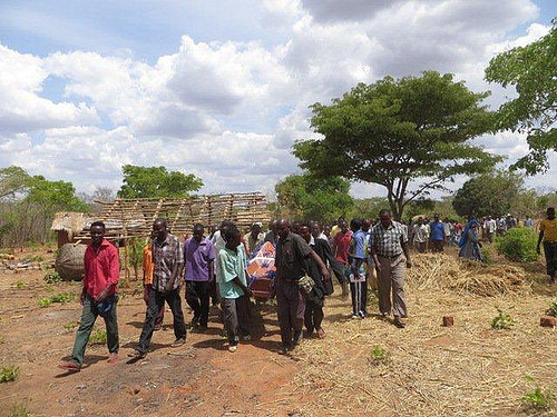 Después de la misa tenía que ir a un entierro, que habían llamado la noche anterior solicitando la misa. Ellos pidieron que la misa fuera por la tarde, pero como nosotros teníamos el Oratorio Infantil, y no había otro sacerdote, les solicitamos que fuera por la mañana, así podíamos llegar para atender a los niños. Y lo digo en plural, porque me acompañaban dos hermanas, para ayudar a la traducción de mi swahili. Salimos junto con cuatro monaguillos, que siempre esperan que los llevemos cuando vamos a celebrar misas en las aldeas los domingos.