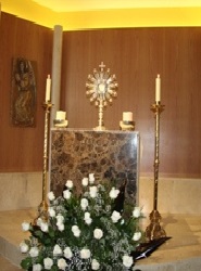 En estos días cumplimos año y medio de la apertura de la capilla de adoración perpetua. Durante este tiempo, para asombro de creyentes y confusión de escépticos, la capilla solo ha cerrado viernes y sábado santo por imperativo litúrgico, mientras que podemos decir que el Señor en la custodia, el Santísimo Sacramento, ha estado SIEMPRE acompañado salvo algunos minutos sobre todo al principio por desconocimiento sobre todo del funcionamiento por parte de algunos adoradores.