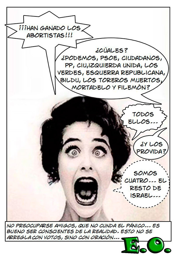 ¡¡¡Dios mío, que vienen... los que ya estaban...!!! E. O., el 25.05.15 a las 12:48 PM Mis queridas bestias, no lloréis. El tiempo nos dirá si hay alguna diferencia (me temo que pocas…) En lugar de intentar ganar por nuestras fuerzas, apoyémonos en quien sí puede. Y veréis milagros