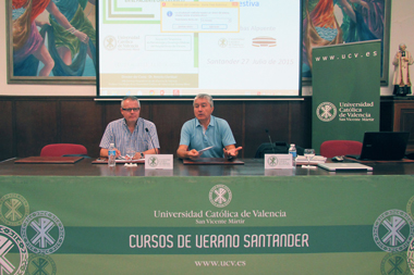 Juan Manuel Campos, profesor de la Universidad Católica de Valencia “San Vicente Mártir” (UCV) y médico adjunto del servicio de Oncología Médica del Hospital Arnau de Vilanova de Valencia, ha coordinado la primera jornada del Curso de Verano de Medicina que la UCV celebra esta semana en el seminario diocesano Monte Corbán de Santander.