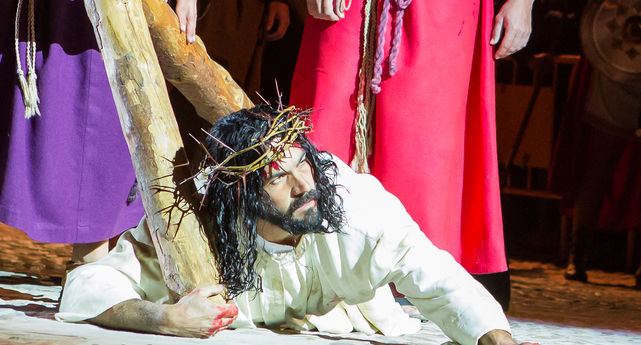 Los encargados de representar este gran Vía Crucis son aproximadamente 200 vecinos del municipio, que convierten la localidad en la Jerusalén de Jesucristo. El vestuario y la decoración son cada año más logrados, además de los medios de sonido e iluminación.