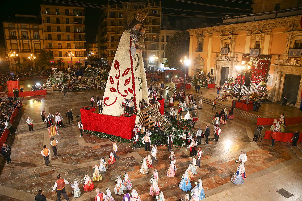 Desfilarán ante la imagen de la Virgen de los Desamparados – “La Geperudeta”, conocida popularmente por su leve inclinación hacia delante - cerca de 400 comisiones falleras de Valencia y de poblaciones del área metropolitana, además de representantes de las casas regionales de otras comunidades autónomas con sede en la ciudad – especialmente numerosas las de Andalucía y Aragón – y de las fiestas de Alicante y Castellón.