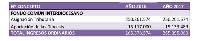 Presupuestos del Fondo Común Interdiocesano para 2018