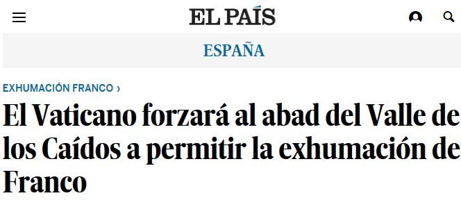 Ayer varios medios de comunicación publicaron una carta filtrada por la Vicepresidente del Gobierno diciendo, con distintas variantes, que el Vaticano apoyaba la exhumación del Jefe del Estado. El diario El Pais, en su frenesí llegó a convertir al prior de la comunidad en abad, y por si no fuese suficiente atribuía al Secretario de Estado Vaticano la intención de que iba «a forzar» al superior de la comunidad benedictina.