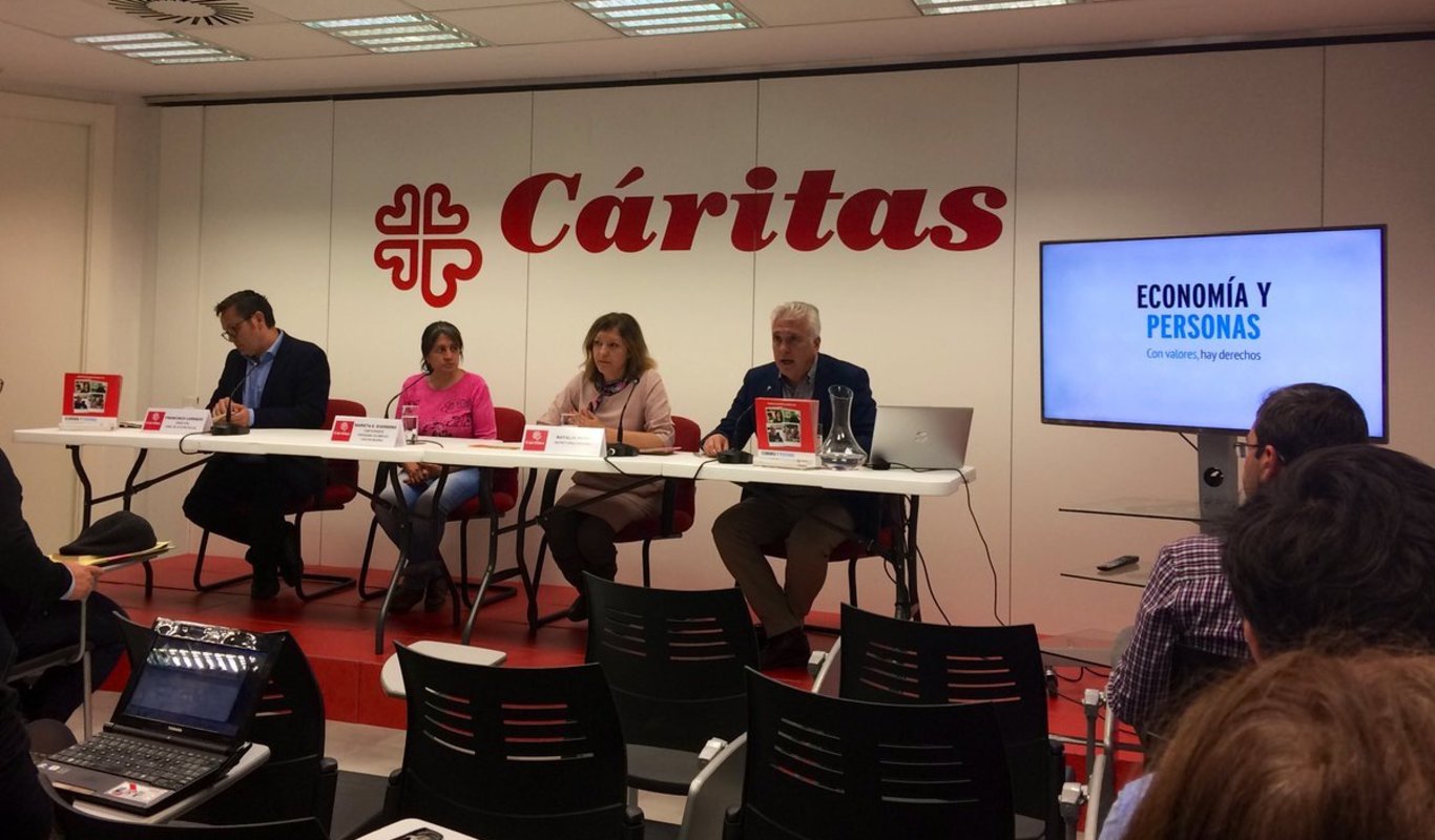 Cáritas ha presentado su informe anual de la Fundación Foessa sobre empleo y exclusión social y en paralelo, otro dossier sobre los programas que realiza la ONG de la Iglesia católica para paliar la pobreza: Economía solidaria: Economía y personas, con valores, hay derechos".