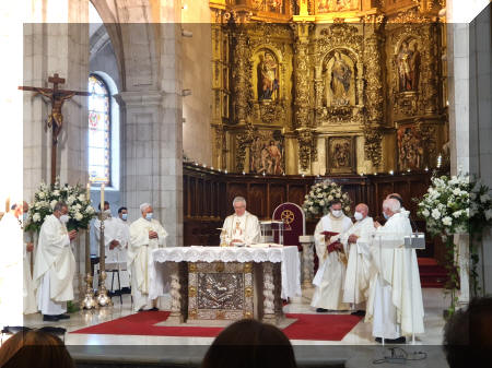 Ante la imposibilidad de celebrar este día de acción de gracias con los otros 20 homenajeados, al verse suspendida la celebración el día habitual, en torno al 10 de mayo, fiesta de san Juan de Ávila, patrono del clero español, y de la siguiente fecha propuesta, el 4 de este mes, fiesta de san Juan María Vianney, patrono de los sacerdotes de todo el mundo, D. Manuel no ha querido dejar pasar la ocasión para celebrar una Misa esta tarde, como la de cualquier domingo, pero con tintes de agradecimiento a Dios por el gran regalo que, en su persona, Dios ha hecho a la Iglesia a través de los diferentes oficios y ministerios que ha desempeñado en su dilatado servicio.