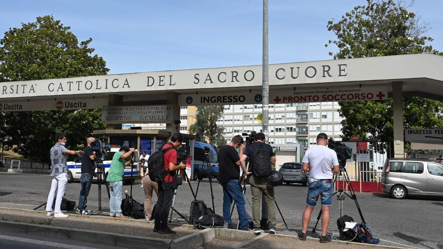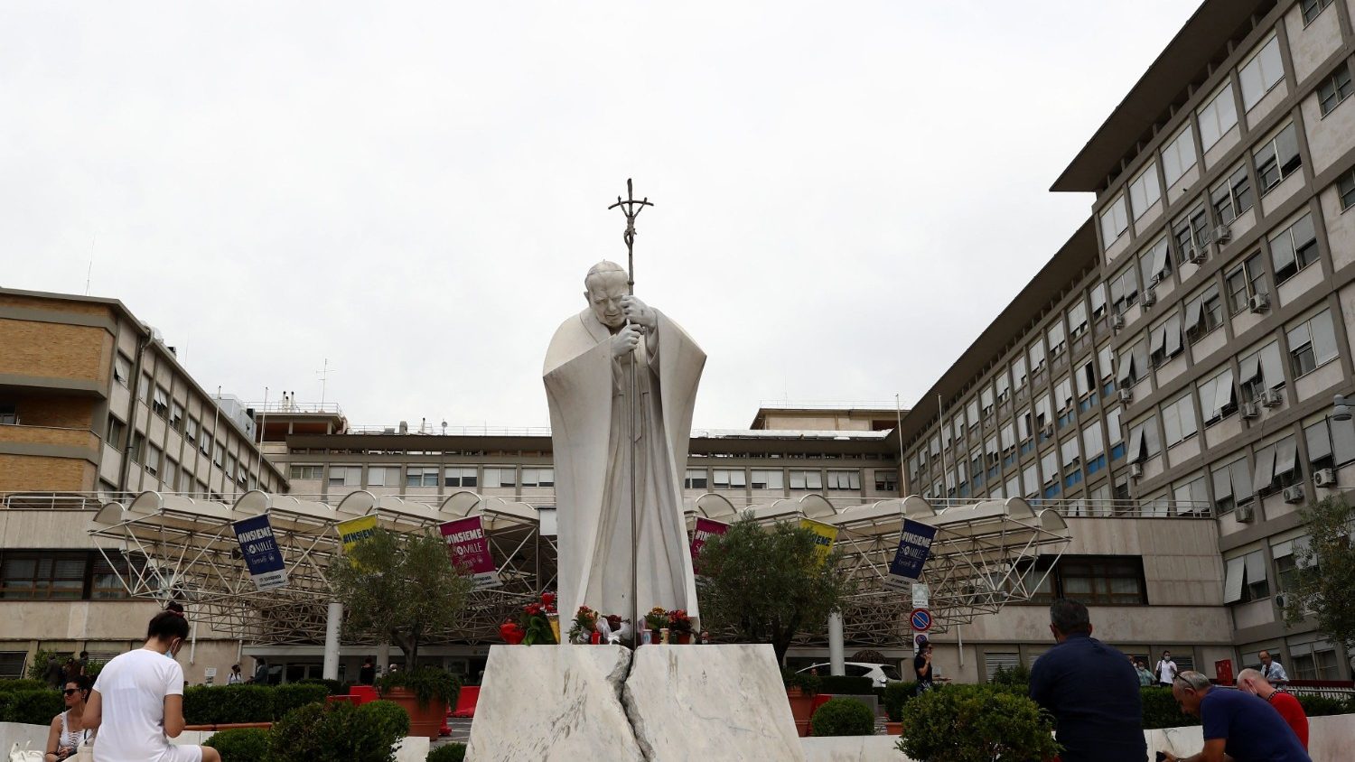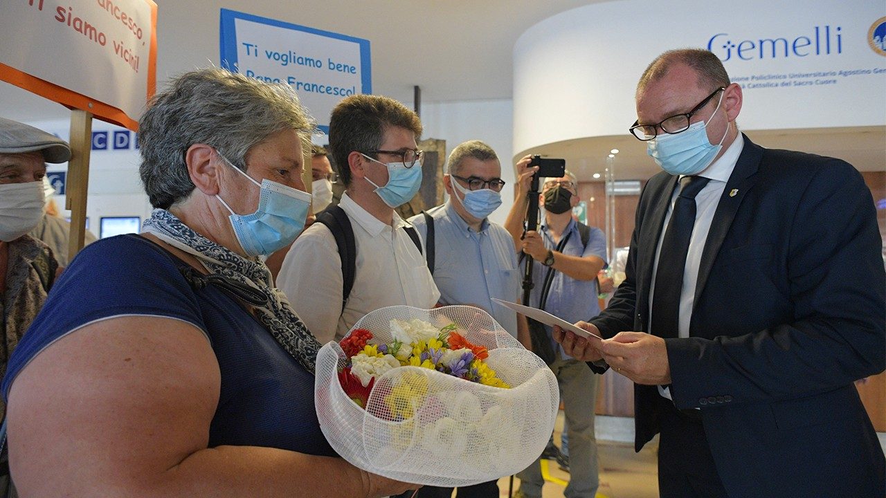 del Centro de Acogida "Palazzo Migliori" se dirigió esta tarde a las puertas del Hospital Policlínico Agostino Gemelli para expresar su cercanía al Santo
