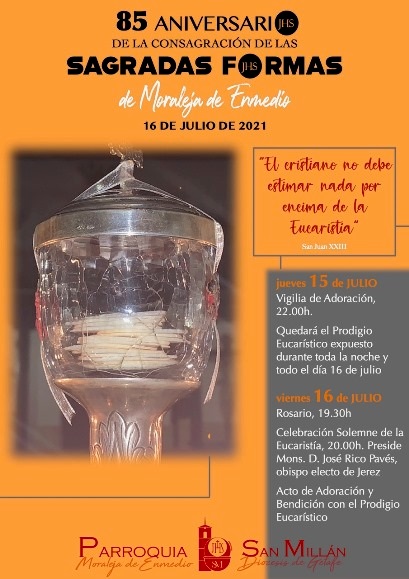 Se cumple el 85º aniversario del prodigio que ha mantenido incorruptas 16 formas consagradas desde la época de la Guerra Civil en la localidad de Moraleja de Enmedio (Madrid).