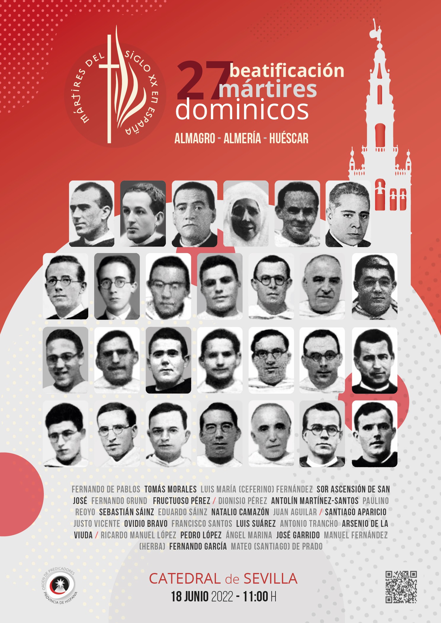 El sábado 18 de junio serán beatificados, en la Catedral de Sevilla, 27 mártires dominicos. El Santo Padre Francisco aprobó la beatificación de estos mártires en diciembre de 2019.