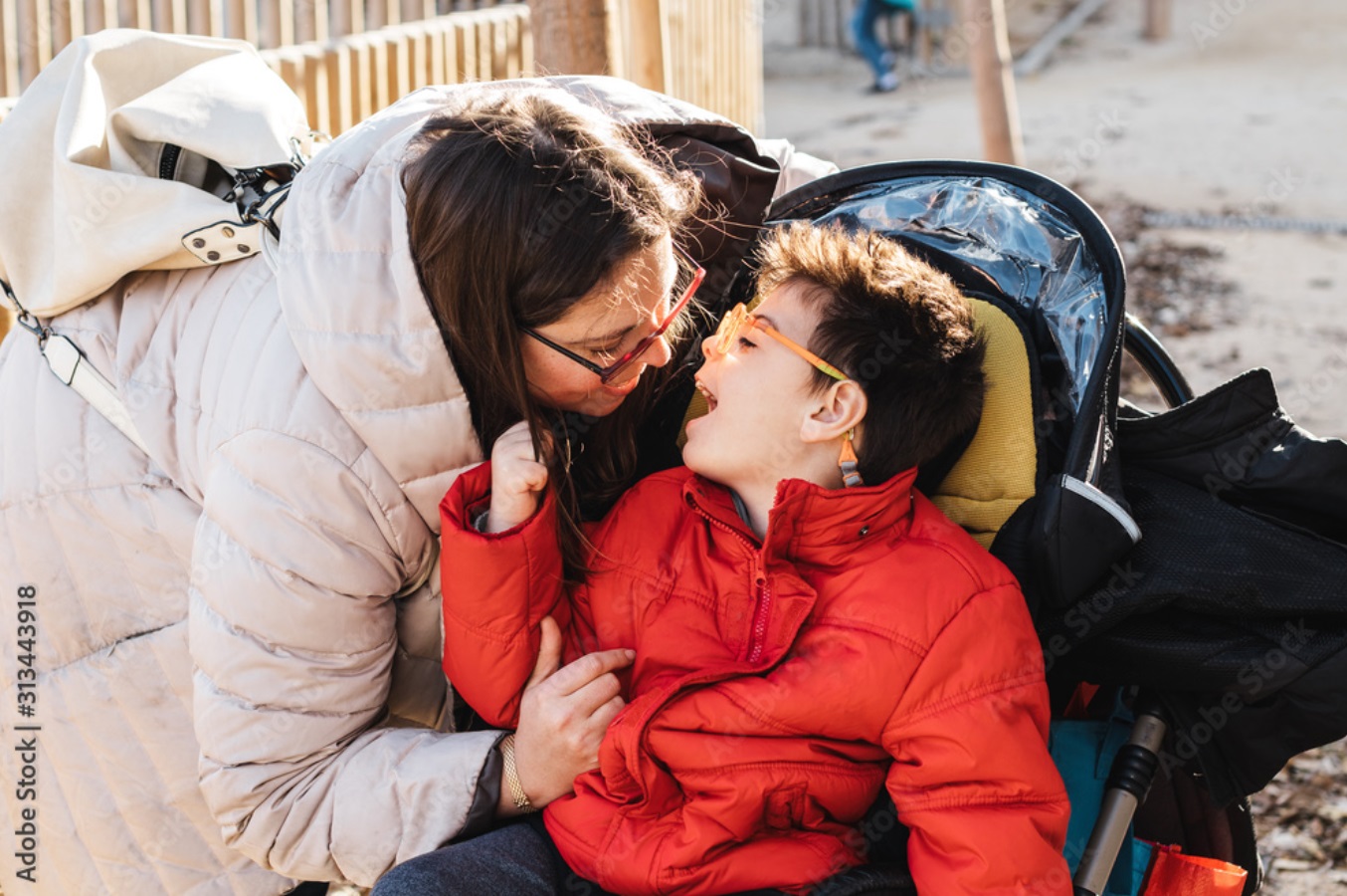 Un madre y su hijo con discapacidad.