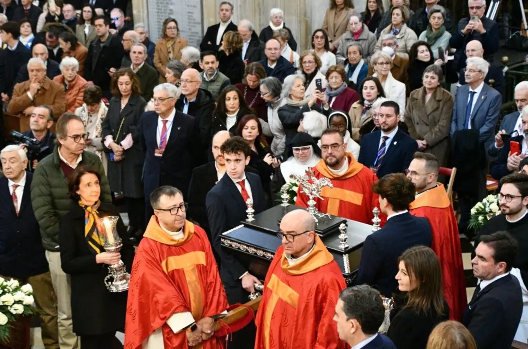 Cuatro sacerdotes portaron la urna de las reliquias.