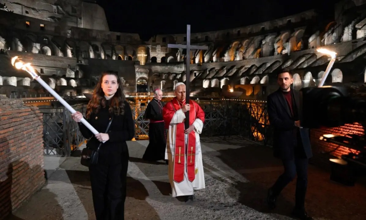 Vía Crucis en el Coliseo presidido por el Papa León XIV,