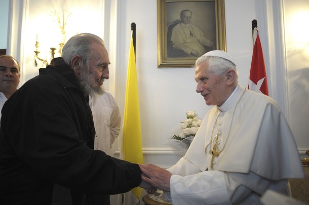 Fidel agradeció al Papa por las beatificaciones de la Madre Teresa, benefactora de Cuba, por la cual él tenía veneración y gratitud, y la de Juan Pablo II, el primer Papa en visitar Cuba, en 1998 (Castro ya se había encontrado con él, en el Vaticano, en 1996). Benedicto XVI llegó en torno a las 12.30 y – refiere el Padre Lombardi – “el encuentro se inició con mucha cordialidad. El Papa habló de su alegría de estar en Cuba y de la cordialidad con la cual fue acogido. Fidel dijo que había seguido todo el viaje por la televisión”. Y luego otra pregunta, sobre los cambios de la liturgia en la Iglesia, que Castro ve distinta de cuando él era joven.