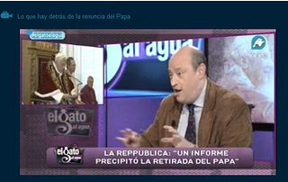 A la mayor parte de los que hemos sido parte de la audiencia habitual de IntereconomíaTV durante los últimos años, especialmente de uno de sus programas estrella, El Gato al Agua, el otro día se nos heló la sangre al ver como dicho programa dedicó 17 minutos a hacerse eco de la “información” sobre el supuesto lobby gay en el Vaticano (lean acá la verdad sobre el tema). Para colmo, invitaron a Enric Frattini, autor de “Los cuervos del Vaticano", “Los Papas y el sexo", “Secretos Vaticanos", etc. Como ven ustedes, no parece alguien la mar de adecuado para tratar un asunto de la Iglesia en un canal de televisión cuyos televidentes son mayoritariamente católicos.