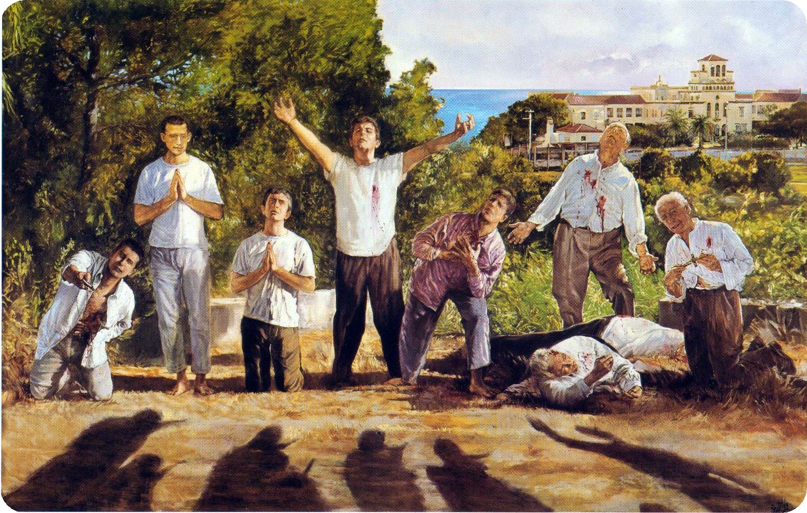 El novicio Enrique Beltrán salió a la carrera al producirse los disparos, siendo alcanzado y muriendo. También el novicio Domingo Pitarch trató de huir ante el tiroteo y cayó herido, manchando con su sangre un crucifijo y un rosario que, antes de que lo remataran, entregó a un miliciano con el ruego de que se lo llevara a su madre. Uno de los liberados, Daniel Asunce, relató que tal deseo no se cumplió, sino que tiraron al suelo allí mismo esos objetos y los patearon.