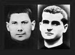 El segundo es un alumno de teología también claretiano, asesinado en Barbastro el 18 de agosto de 1936: Jaime Falgarona Vilanova (izquierda en la imagen), de 24 años y natural de Argelaguer (Girona), beatificado en 1992 con sus 50 compañeros. Él y Atanasio Vidaurreta Labra (derecha), de 25 años, fueron los últimos estudiantes claretianos asesinados en Barbastro, que se salvaron de ir antes a la muerte por estar en el hospital, junto con el hermano Joaquín Muñoz. Pronto se pusieron bien, pero los médicos, que sabían estaban condenados, alargaron su permanencia lo que pudieron, hasta que el 15 de agosto, por la tarde, tuvieron que darles de alta, y sus guardianes los llevaron a la cárcel. El anciano Hermano Muñoz se pasaba el día rezando rosarios, pues se había propuesto rezar una parte por cada hora de cautiverio, según la biografía publicada por Hispania Martyr.El terror imperaba en la cárcel por las noches. Los bocinazos del camión de la muerte a su llegada a la plaza; los ruidos de los cerrojos de las puertas vecinas; la lectura de las listas; la saca de los llamados. Al amanecer del día 18, se abrió la puerta de su celda y les despertó la voz del carcelero que tras los nombres de los sacerdotes Miguel Charles y los hermanos López, leyó el de los tres misioneros claretianos. Al Hermano Muñoz tuvieron que bajarlo entre dos. Al verlo tan achacoso y herniado, los milicianos se dijeron en voz alta: “¿Qué vamos a hacer con este viejo trasto inútil?”, y lo apartaron, volviéndole a subir a la celda. Él contó la vida en prisión.