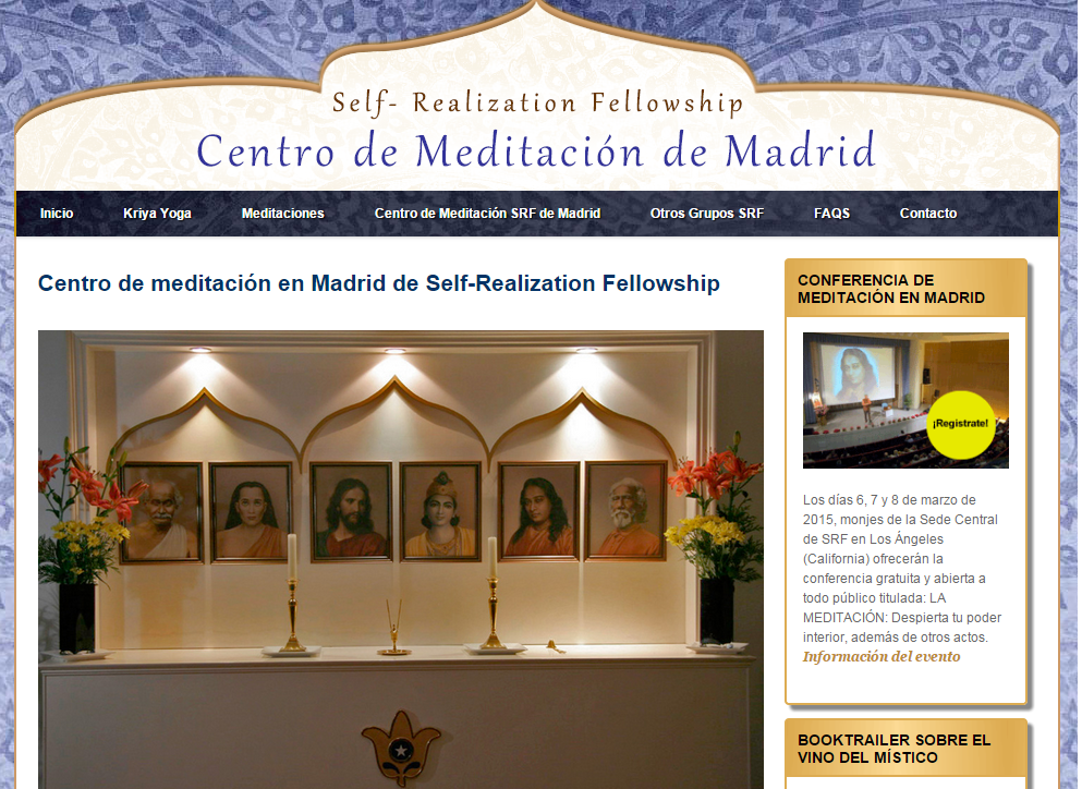 Verdaderamente, este tipo de cosas es algo que nunca entenderemos en la RIES (Red Iberoamericana de Estudio de las Sectas). Y sobre todo cuando se trata de un caso tan simple de distinguir, porque algunas veces se pueden ceder locales ante grupos que pueden parecer cristianos, pero a un Swami Sevananda, al Kriya Yoga de Paramahansa Yogananda, es cuanto menos llamativo. Y aún hoy, en la web de Yogananda se puede ver de forma muy llamativa, a la derecha, la conferencia del hermano Sevananda.Está anunciada para el viernes día 6 de marzo. Esperemos que no se celebre. No creemos que a San Agustín, que tanto luchó contra donatistas, maniqueos, pelagianos o arrianos, le gustara ver a su Señor Jesucristo, al Hijo de Dios, su “Hermosura tan antigua y tan nueva”, en ese altar de la Self-Realization Fellowship, y mucho menos en sus propios centros educativos.