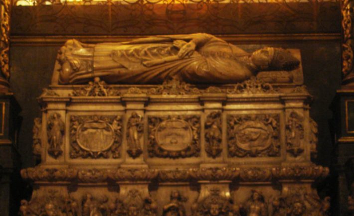 Al día de hoy su sepulcro sigue estando justamente detrás del altar de la Capilla del Santísimo de la Catedral de Barcelona, presidida en lo alto (tiempo cuaresmal aparte*) por la imagen del Santo Cristo de Lepanto. Sus restos visibles incorruptos se veneran por los fieles que se acercan al sepulcro (por detrás) sólo el día 6 de marzo de cada año. Basta acercarse al altar del Santísimo. Es el único día anual que es objeto de veneración presencial. La información de la web de la Catedral es ecuánime en eso. Sigue sin serlo en eso de la leyenda del Santo Cristo de Lepanto. Como recordatorio de ello les inserto el link de mi segundo escrito acerca del asunto. Asunto que no he digerido y no digeriré por su grave falsedad.