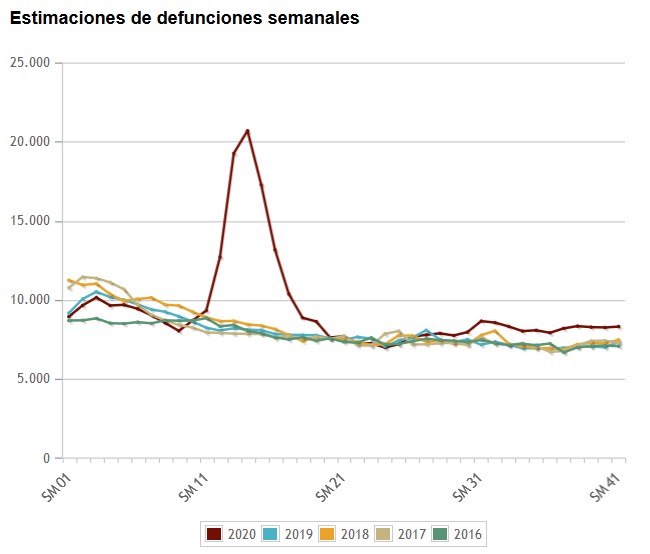 El Grupo Areópago ha hecho una investigación para facilitar la consulta de los datos oficiales, por eso ofrecemos algunas referencias que pueden ayudar a valorar lo qué está pasando en España en cada momento. Según la investigación que hemos realizado el dato más veraz y contrastable nos lo ofrece el Instituto Nacional de Estadística, es la comparación de defunciones acumuladas de los últimos años: https://www.ine.es/experimental/defunciones/experimental_defunciones.htm