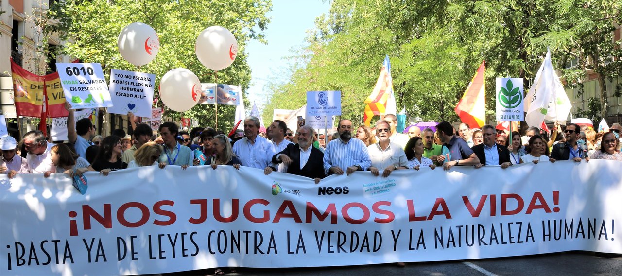 Cabecera de la manifestación provida.