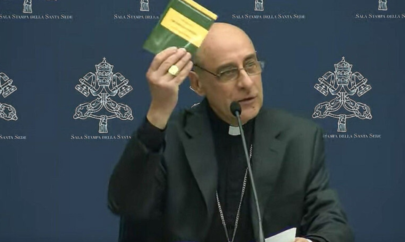 El cardenal Víctor Manuel Fernández mostrando el documento “Dignitas Infinita”.