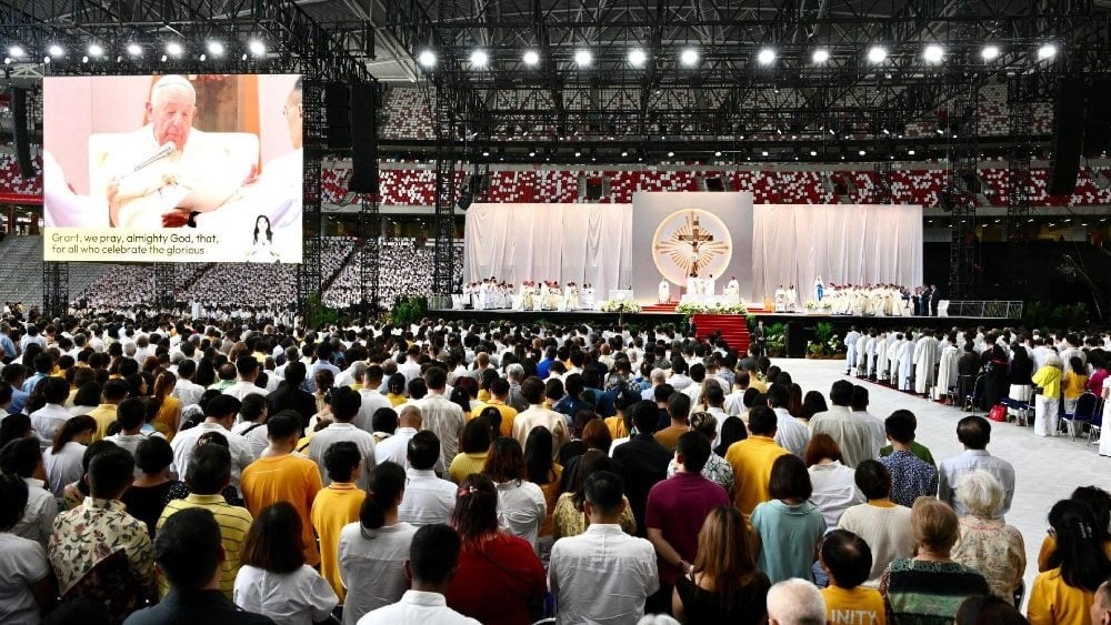 "Cantos, aplausos y mucho barullo", así define Vatican News el recibimiento que más de 50.000 fieles han hecho al Papa Francisco en el Estadio Nacional “Sport Hub” de Singapur donde el Papa ha presidido hoy la Santa Misa, la última que celebrará en este extenso 45º Viaje Apostólico, a Asia y Oceanía, que le ha llevado a Indonesia, Papúa Nueva Guinea y Timor Oriental.