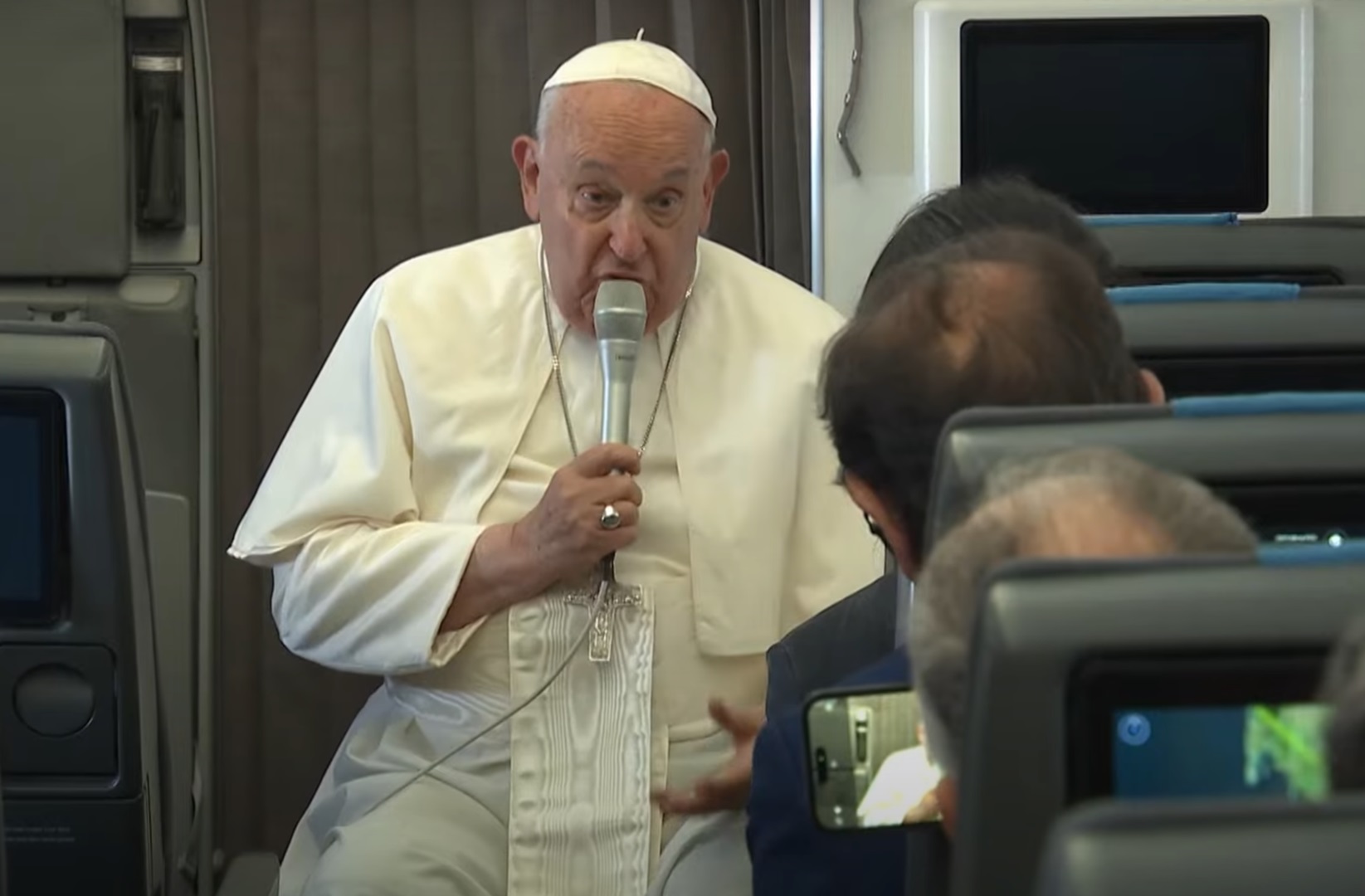 El Papa Francisco en el vuelo de Singapur a Roma dialoga con los periodistas.