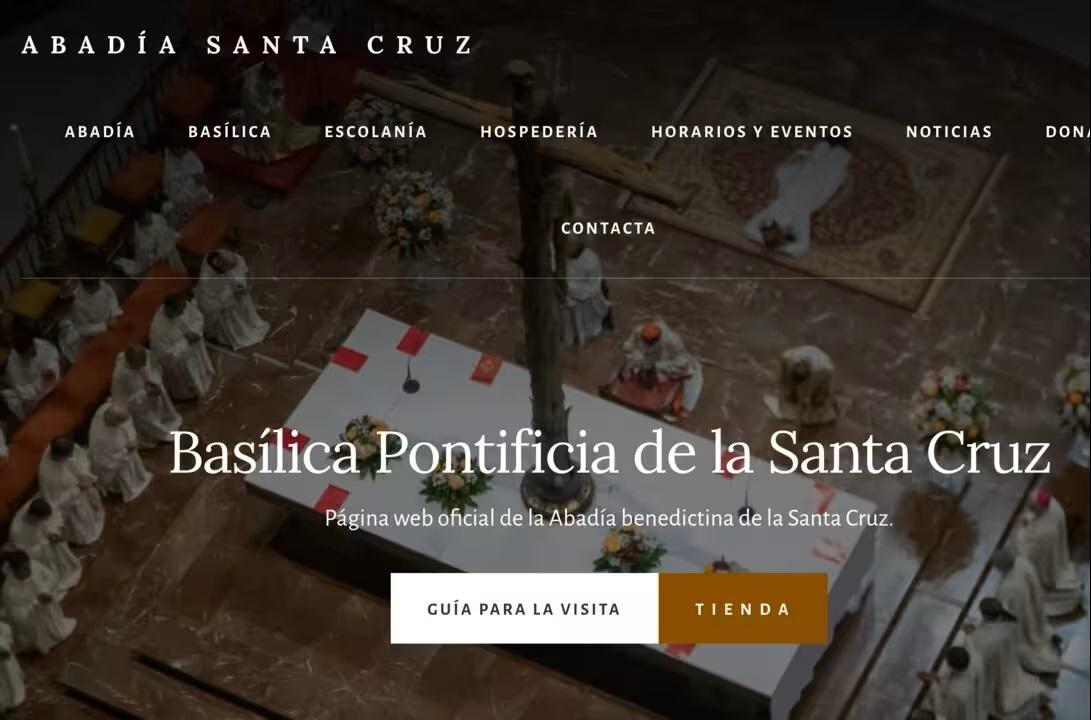 Se presenta como “Basílica Pontificia de la Santa Cruz. Página web oficial de la Abadía benedictina de la Santa Cruz”